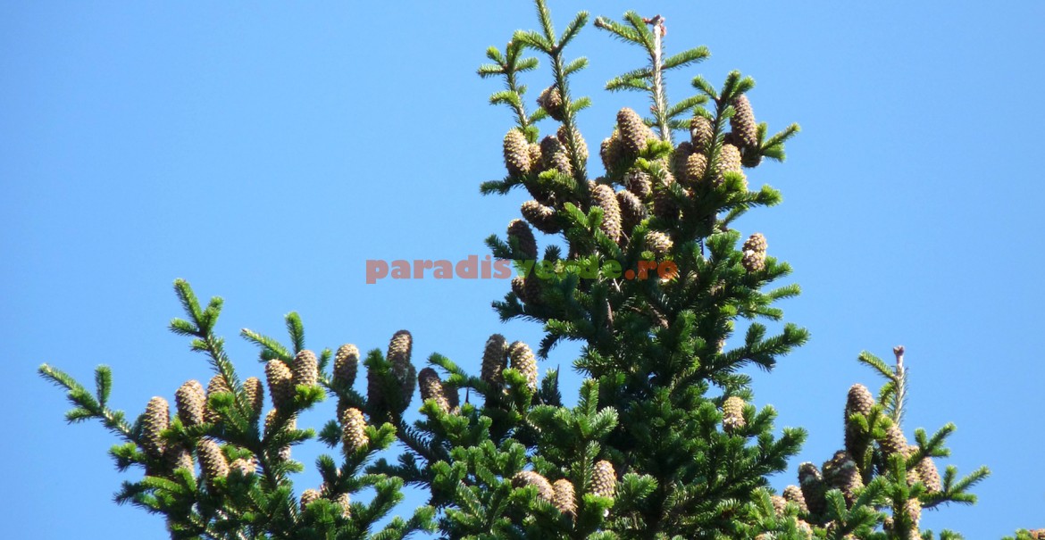 - Conurile sunt erecte, au lungimi de 10-16 cm și se maturează în septembrie.
