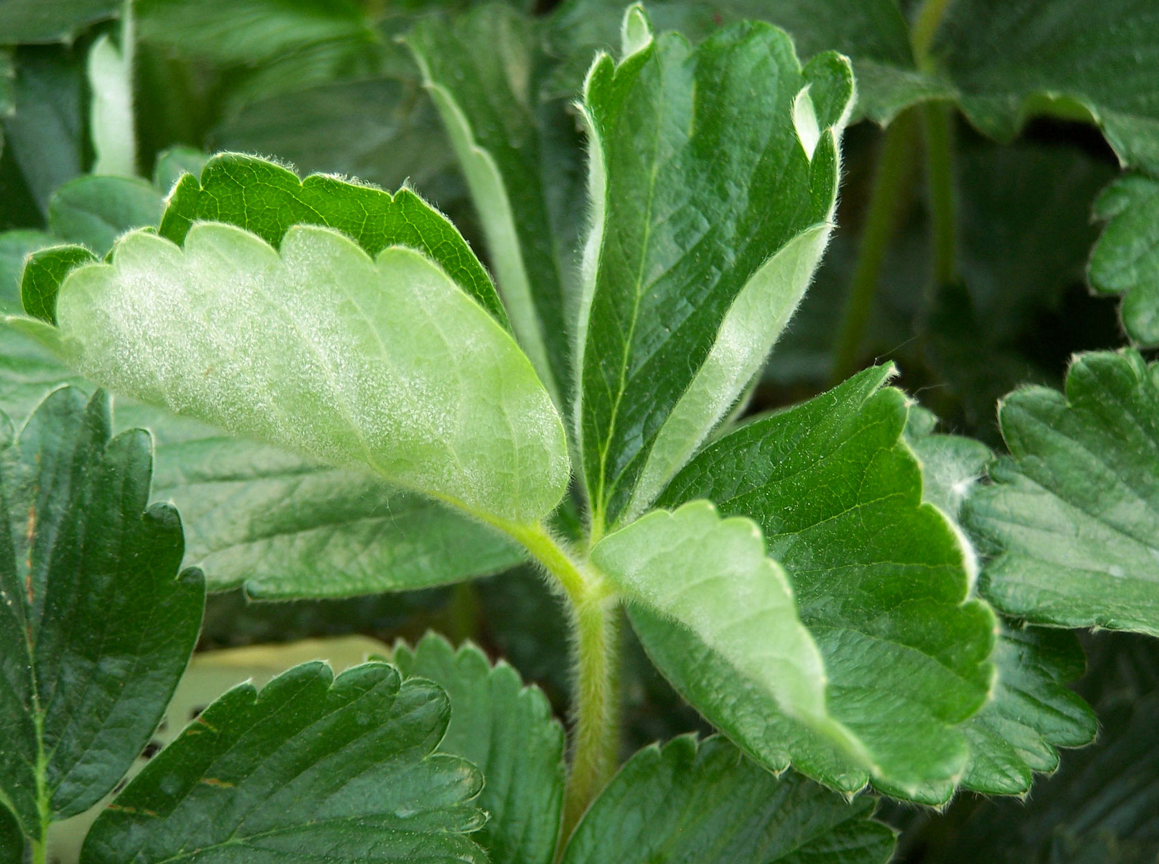 - Ciuperca formează pe organele plantei - în special pe frunze și, mai rar pe înflorescențe sau pe fructe - pete albicioase, pâsloase care devin, la un moment dat, prăfoase.