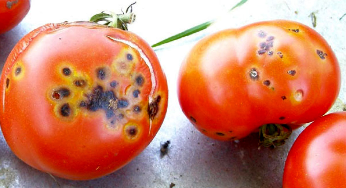- Bacteria atacă tulpina, pețiolul fructelor, frunzele, florile și fructele care nu au depășit 3 cm diametru.