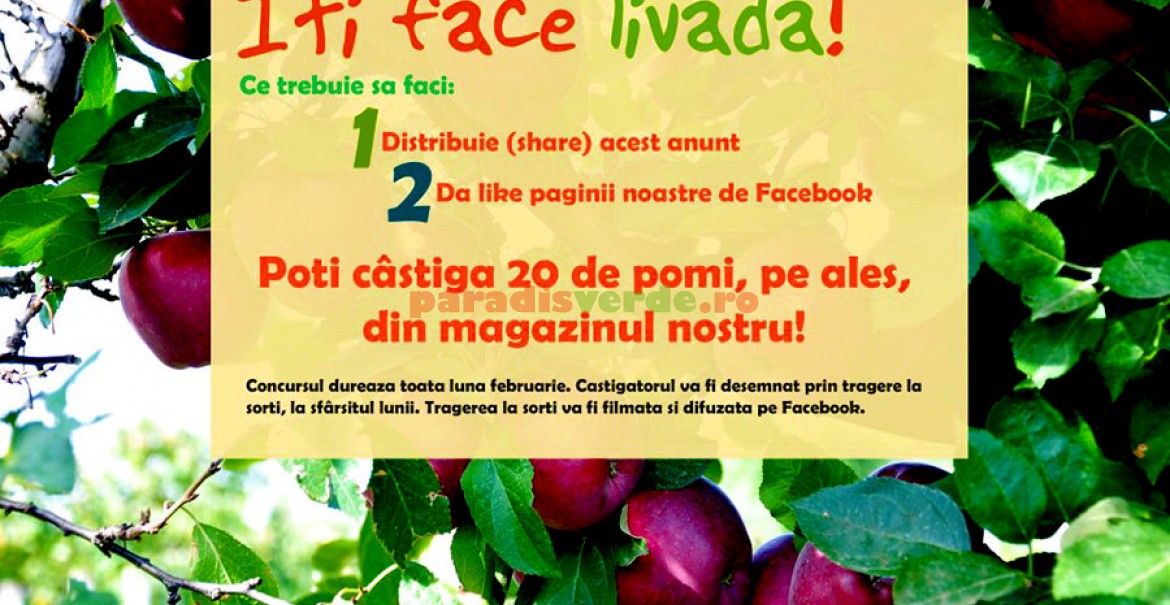În data de 3 februarie 2013, paradisverde.ro a lansat pe Facebook un concurs al cărui premiu erau 20 de pomi fructiferi, pe ales, din MAGAZINUL nostru.