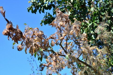 - Iernează ca larvă de vârsta a doua, pe ramuri sau pe frunzele căzute pe sol.