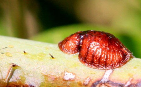 - Femelele și larvele colonizează scoarța pomilor, înțepând și sugând seva, lucru care conduce la necrozarea zonelor atacate.