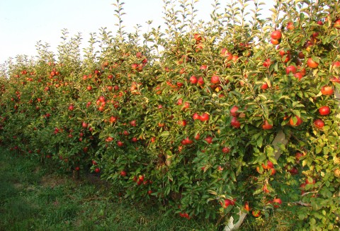 Coroane aplatizate care după formare completă realizează rânduri compacte sub forma unui gard viu.
