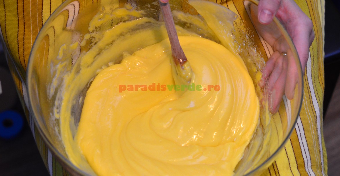 Se adaugă gălbenuşurile crude, bine separate de albuş.