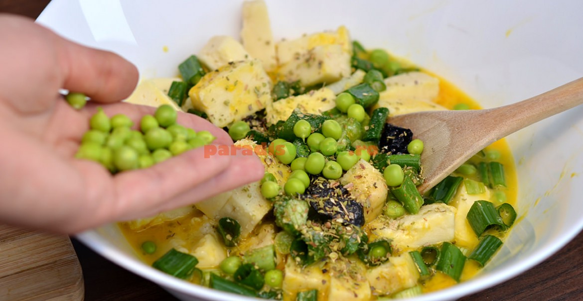 După ce compoziţia s-a coagulat, se taie în cruce cu o lingură sau o spatulă de lemn. Omleta nu trebuie întoarsă.