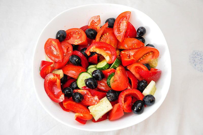 Legumele ce pot fi folosite la salată sunt: roșii, castraveți, ceapă, ardei, gogoșari, însă, cu un pic de imaginație, putem face și unele „îmbunătățiri”.