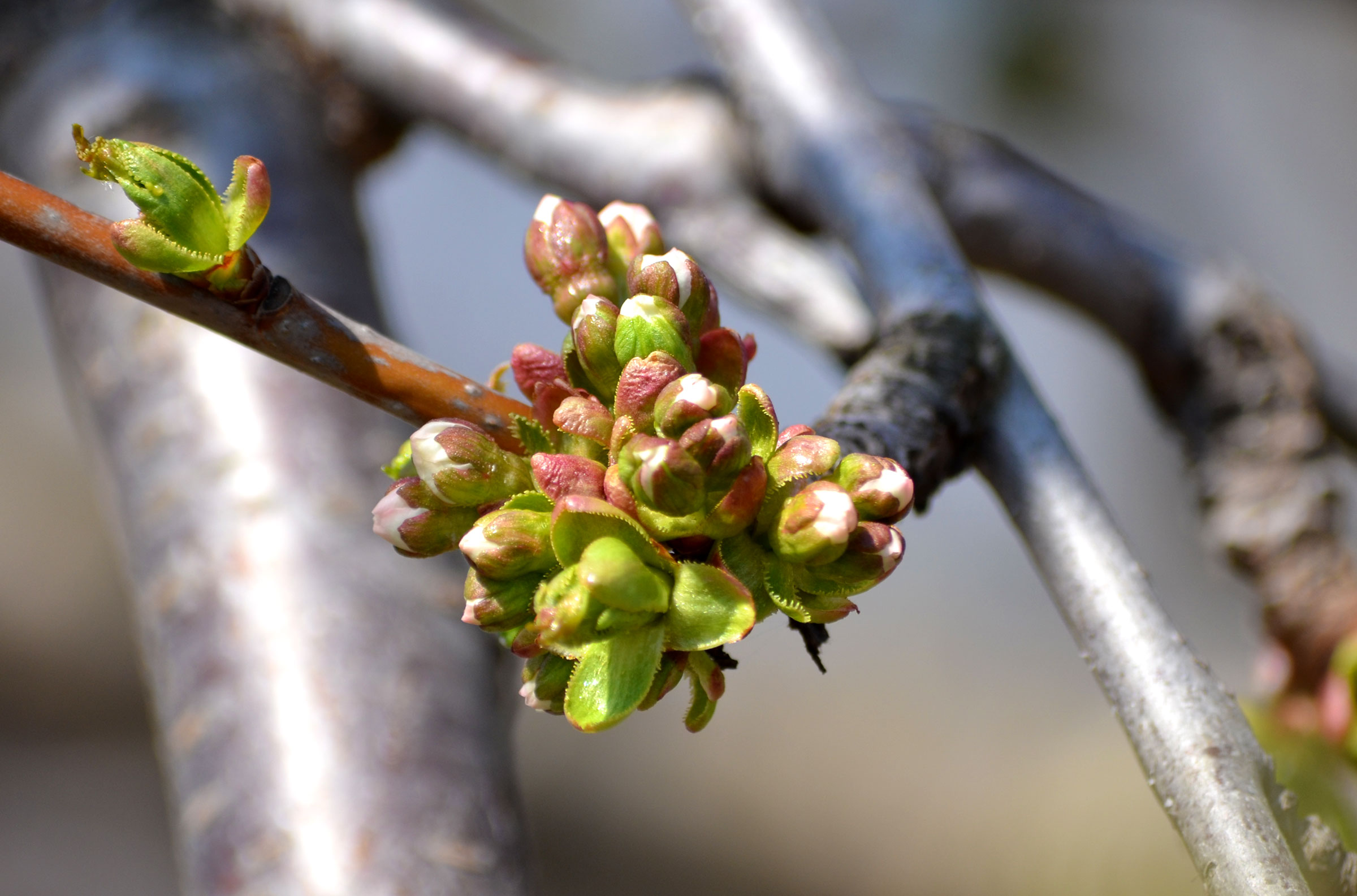 Culoarea albă a petalelor se zărește în mugurii floriferi care încep să se deschidă.
