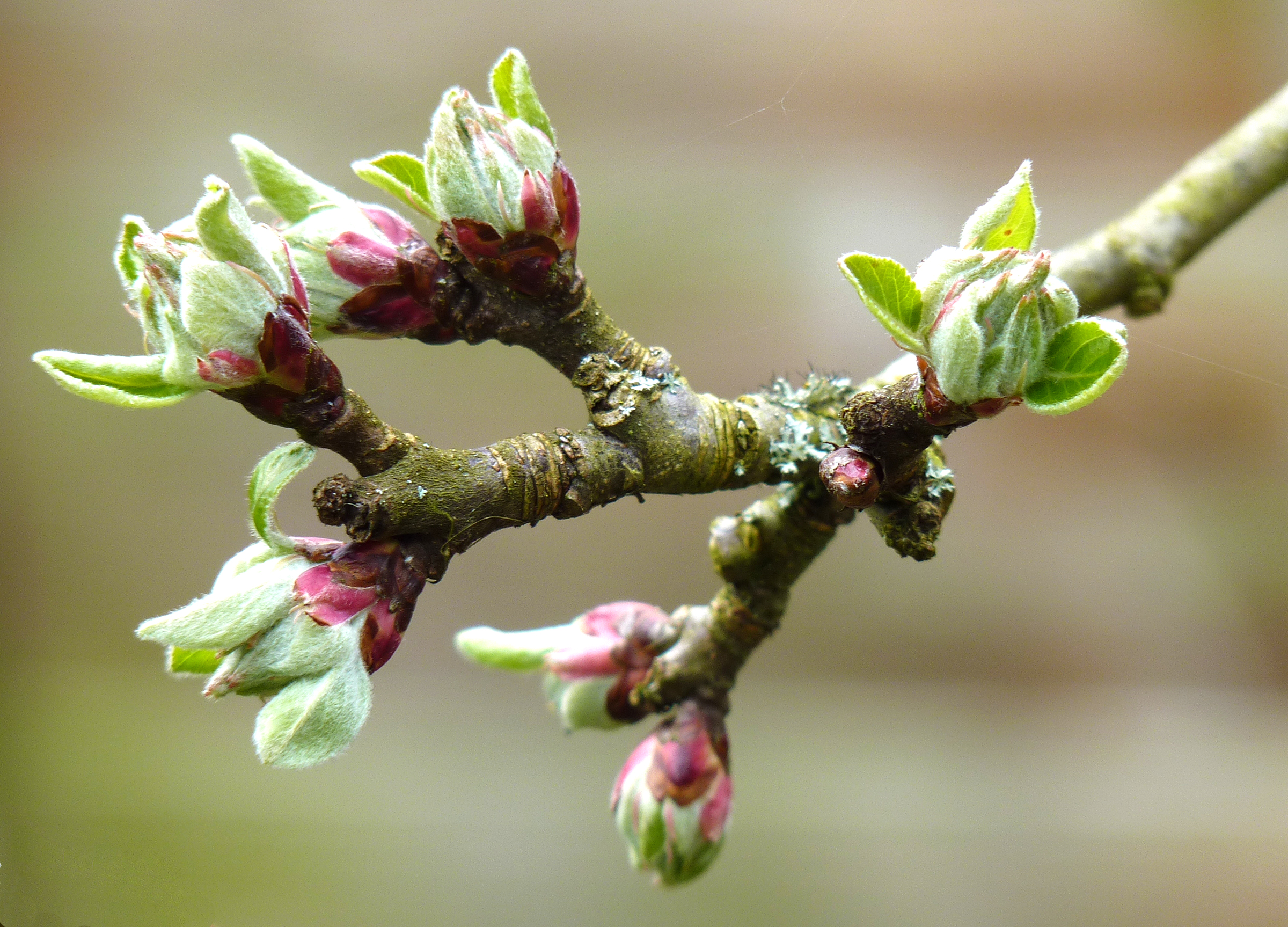 Debutul intrării în vegetație. Mugurii încep să se deschidă, dând la iveală țesut nou, verde-argintiu.