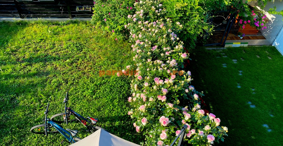 - Trandafirul din imagine este Pink Peony, însă puteți face un gard florifer la fel sau aproape la fel de frumos și cu Goldfinger, Westerland etc. Dacă îi cumpărați la ghiveci, cu vârsta mai înaintată aveți garanția că sigur se prind, se dezvoltă și înfloresc fabulos, chiar din primul an. Plus că-i puteți planta și în extrasezon, nu doar primăvara și toamna.