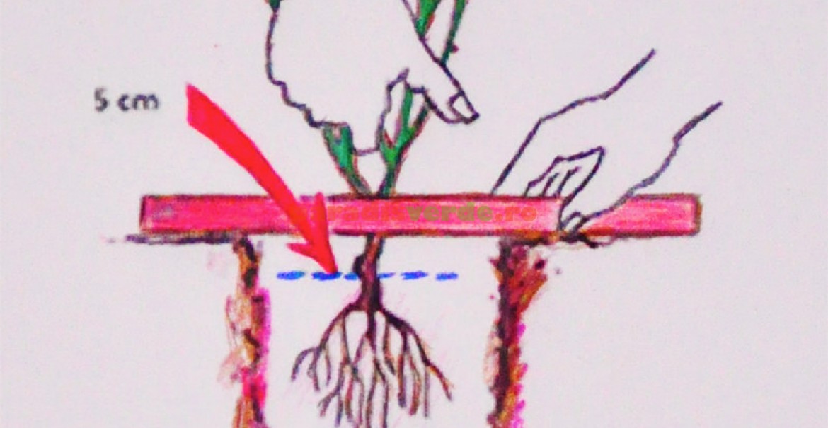 Se sapă gropi suficient de mari pentru rădăcinile plantei, aşa încât punctul de altoire să fie îngropat la câţiva centimetri.