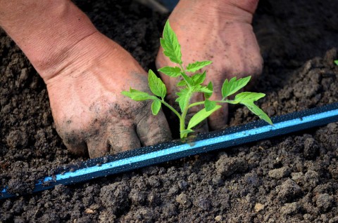 Dacă folosiţi un sistem de udare prin picurare, desfăşuraţi-l înainte de plantare, pentru a putea aşeza planta exact lângă picurătoare. Liniile de irigare prin picurare trebuie să treacă exact pe lângă plantă.