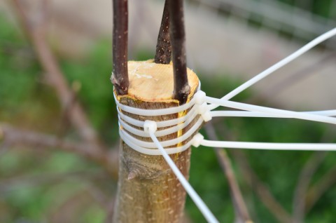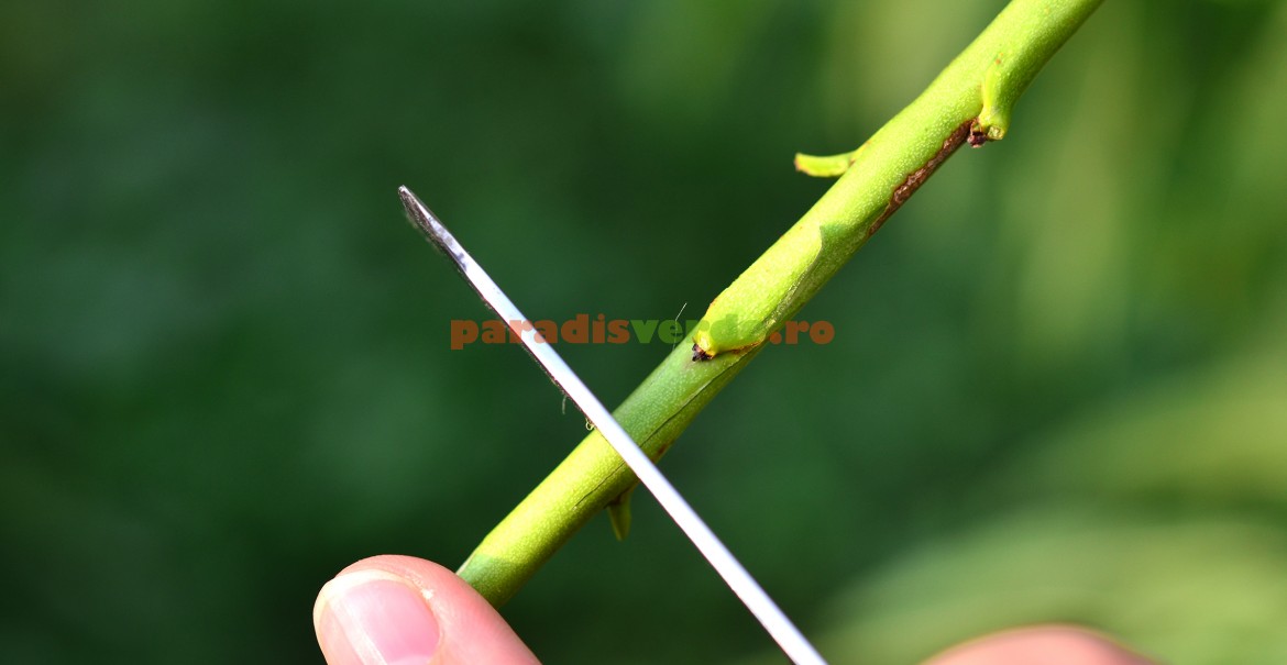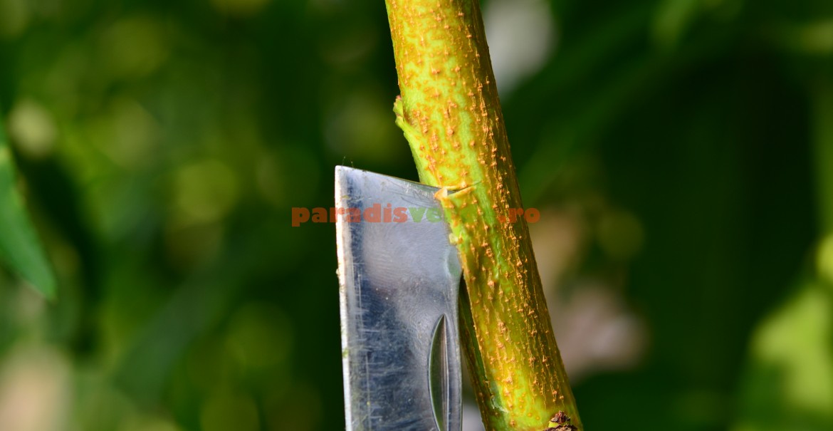 Foarte important! Ramura se taie la 1-2 cm deasupra ochiului altoi, pentru a direcționa toată energia către acesta. Dacă nu se efectuează această operație, ochiul altoi se va dezvolta anemic sau chiar va pieri în timp. De asemenea, nu se va permite creșterea de lăstari viguroși, concurenți, în zona altoiului.