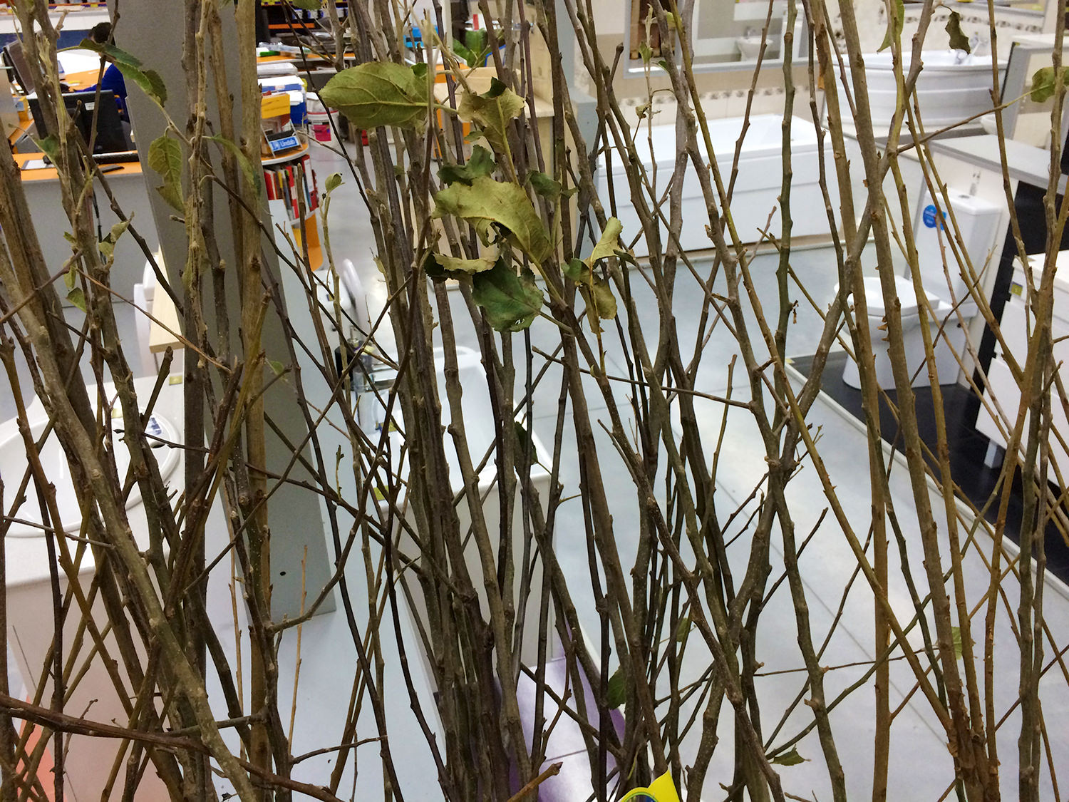 5. După cum vedeţi şi din imaginea de mai sus, desfrunzirea este adesea incompletă. Frunzele rămase, prin transpiraţie, deshidratează pomul, condamnându-l practic la moarte peste iarnă.