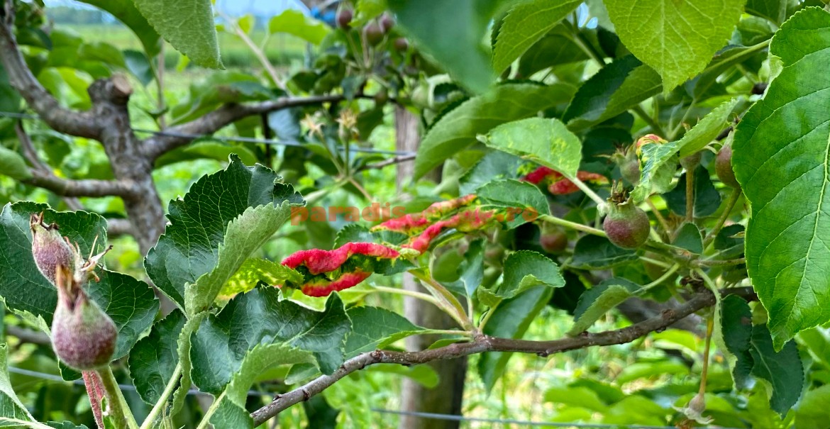 - Atunci când apare, arată spectaculos, cu colorație intensă, tocmai pentru că agresivitatea bolii în foliajul de măr este redusă, neputându-se răspândi în tot pomul.