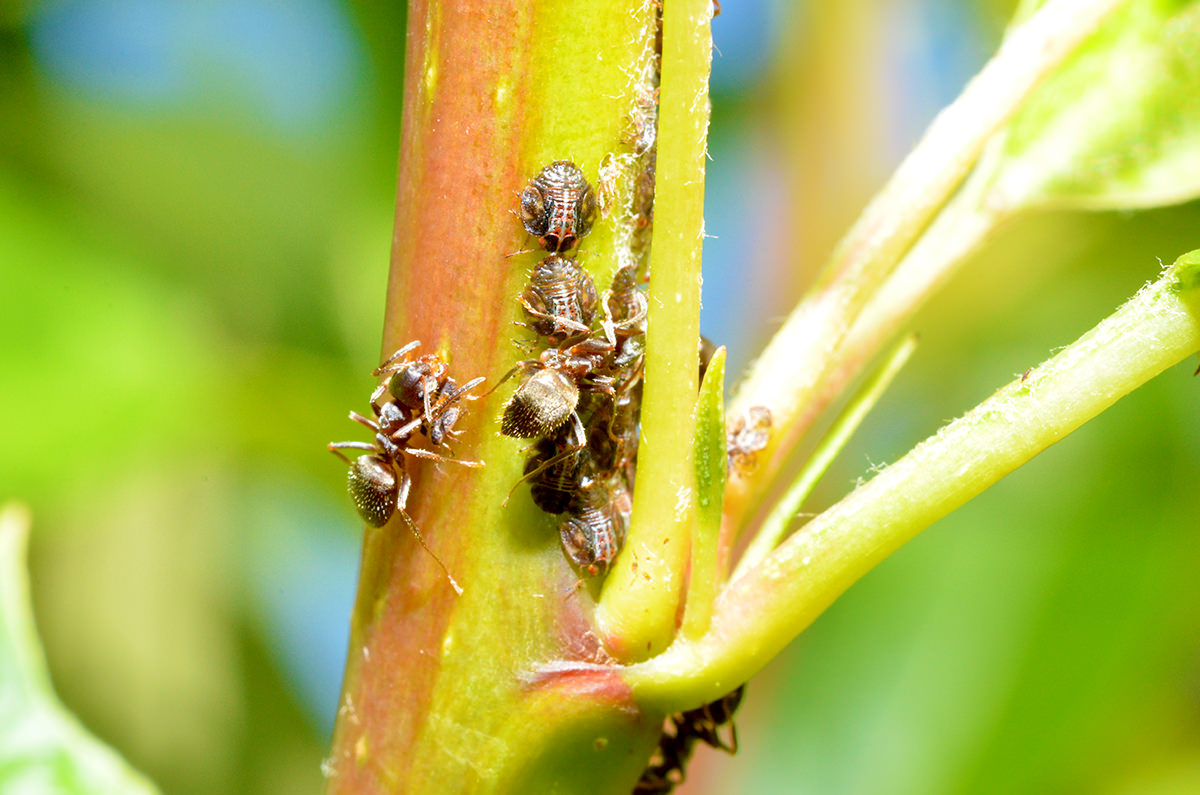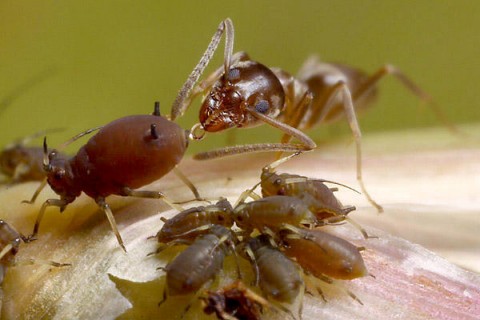Furnicile au o relaţie simbiotică, un parteneriat cu afidele care poate fi foarte dăunător pentru plantele cultivate.