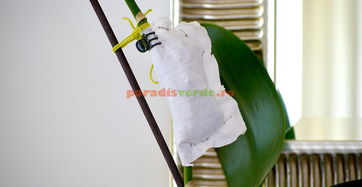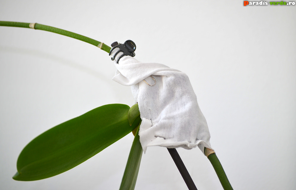 Pentru confecţionarea săculeţului cu turbă puteţi folosi tifon sau pânză de bumbac. Vă puteţi folosi de un capsator pentru a-l fixa în jurul tijei, dar fără a răni tija!