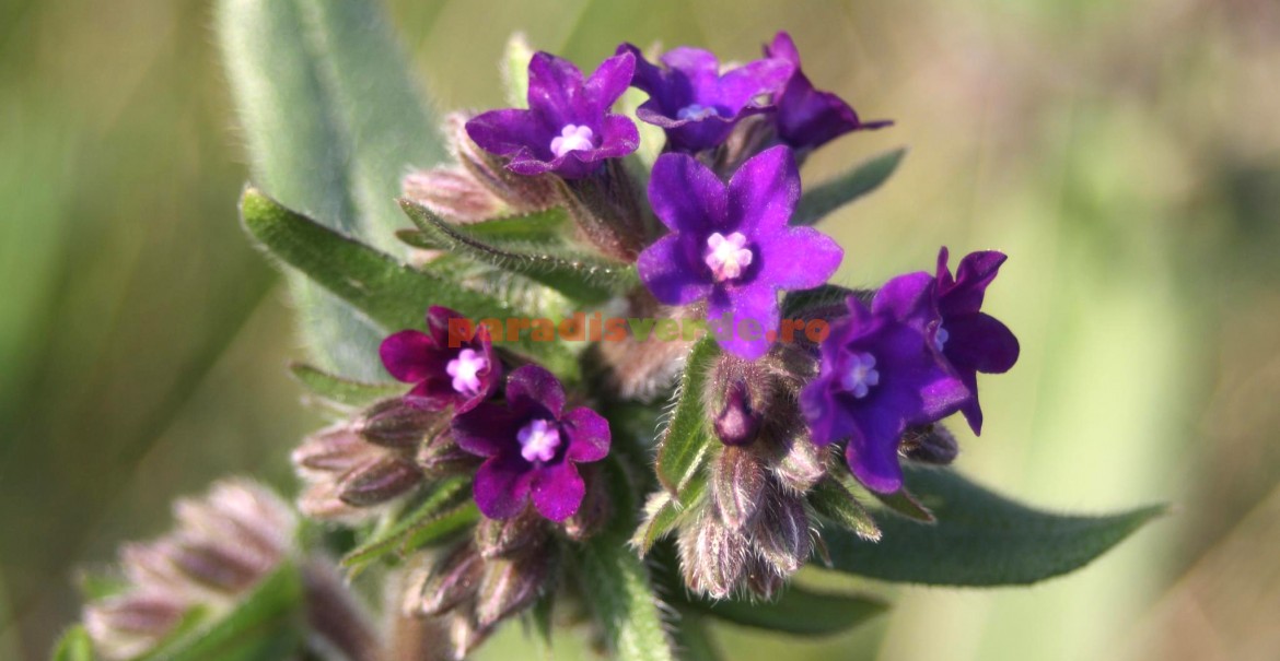 - Florile sunt albastru-azurii, purpurii sau roz, cu formă de pâlnie, dispuse în inflorescențe.