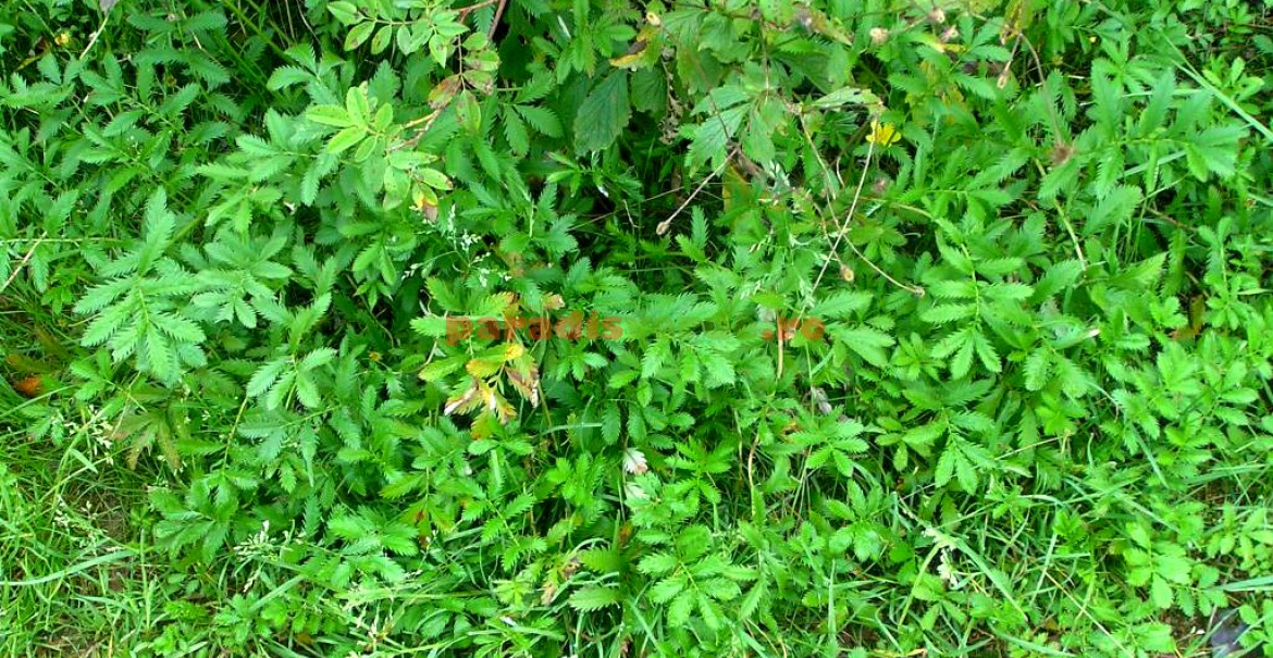 - Frunzele sunt penat-compuse, au 13 - 21 foliole dințate și perișori argintii. La bază, planta formează o rozetă de frunze ovale.