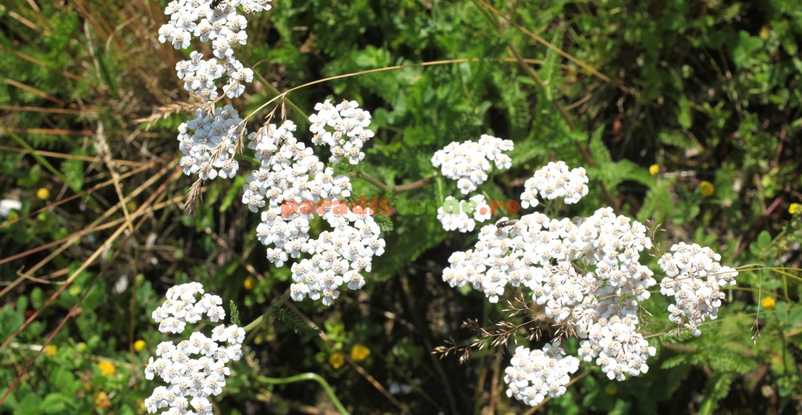 - Florile sunt mici, albe, uneori roz și chiar roșii, grupate în capitule ovoide care, la rândul lor, sunt reunite în corimb la extremitatea tulpinii.