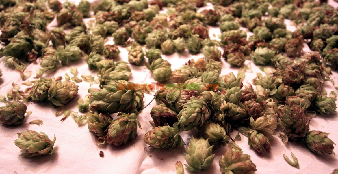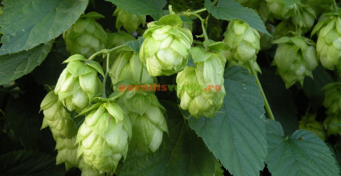 - Florile sunt adunate în conuri ovoidale și sunt acoperite cu un praf fin de culoare galbenă-aurie, numit lupulină.
