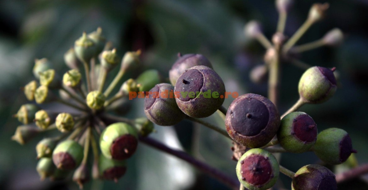 - Fructele sunt bace negre-violacee. Atenție Fructele de iederă sunt otrăvitoare, în special pentru copii.