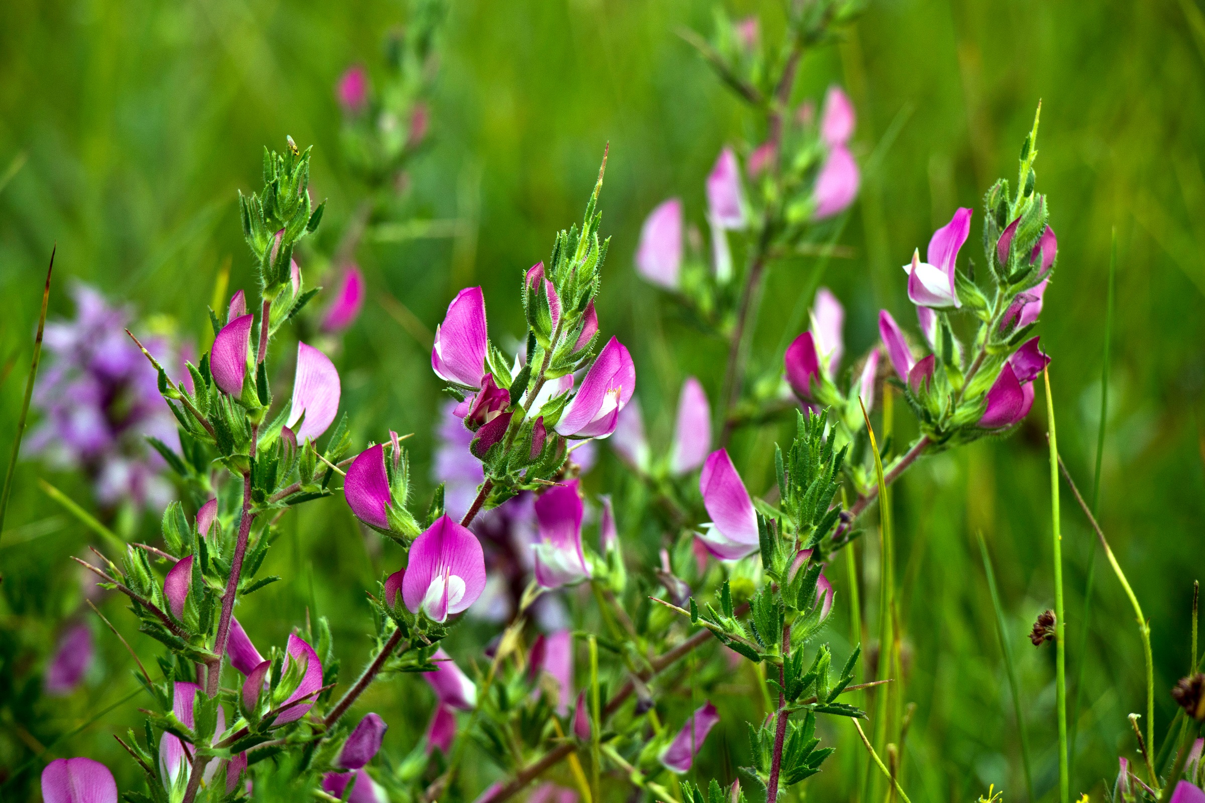 - Florile sunt mari, cu 5 petale de culoare roz sau liliachie și cu 10 stamine negre.