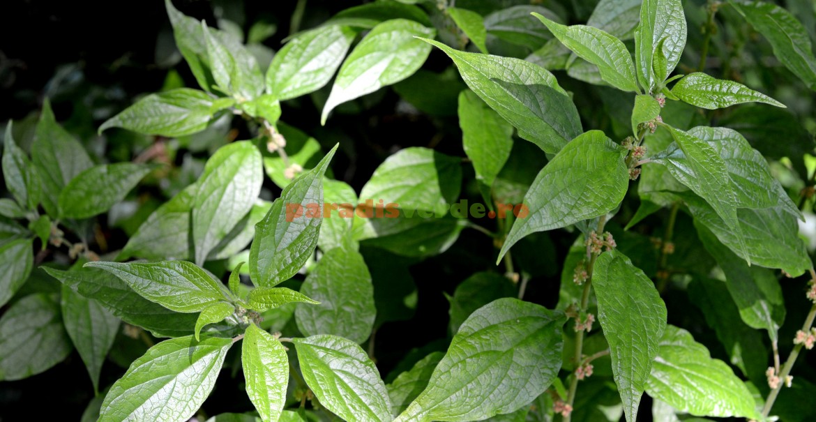 - Frunzele sunt ovat-lanceolate, ascuțite, aspre, dispuse altern.