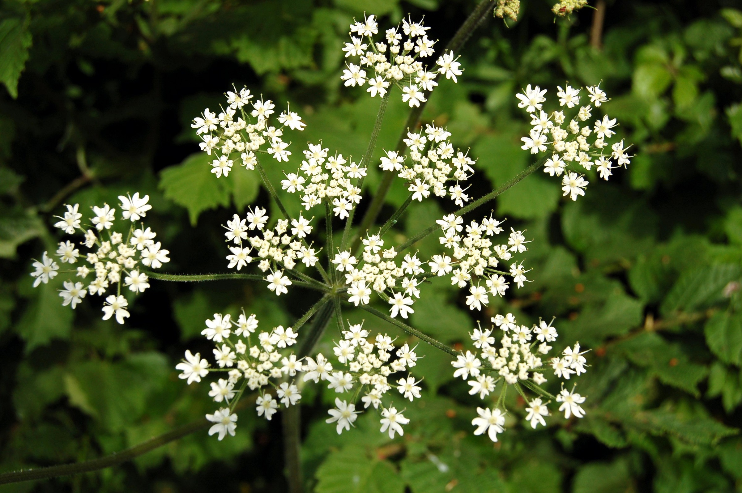 - Florile, reunite în inflorescențe compuse, sunt albe și mai rar roșiatice.