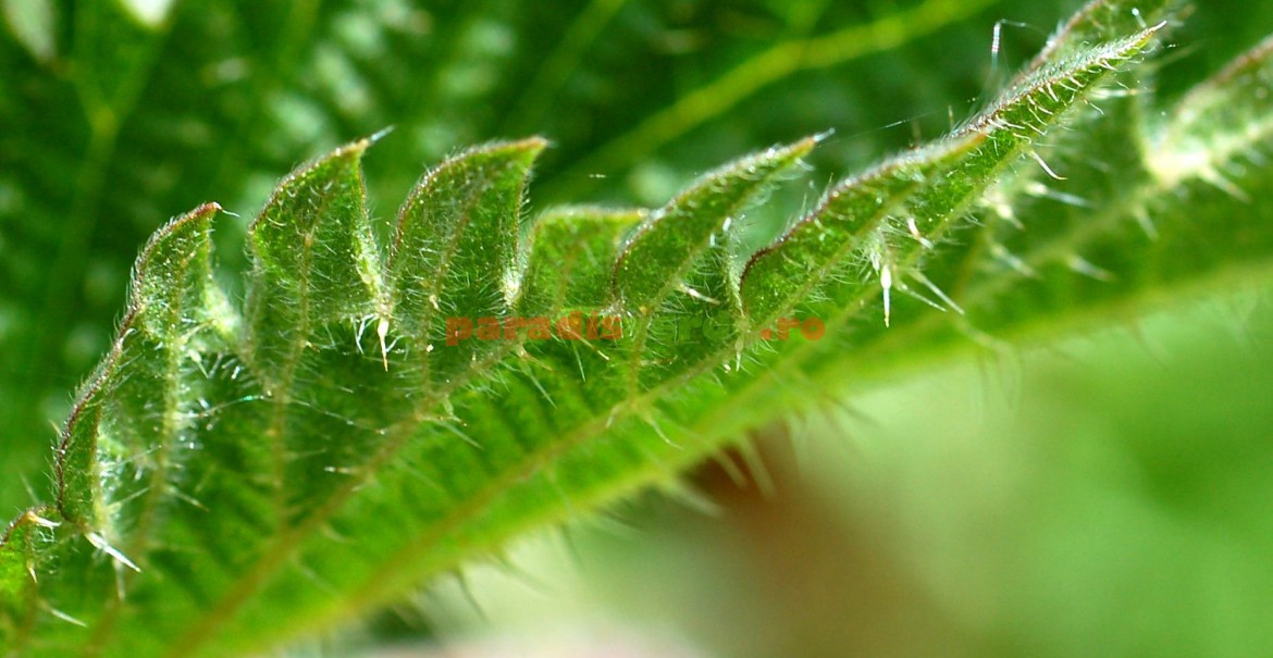 - Frunzele sunt ovate, lanceolate, cu marginile dințate, cu nervuri proeminente, acoperite cu perișori urticanți.