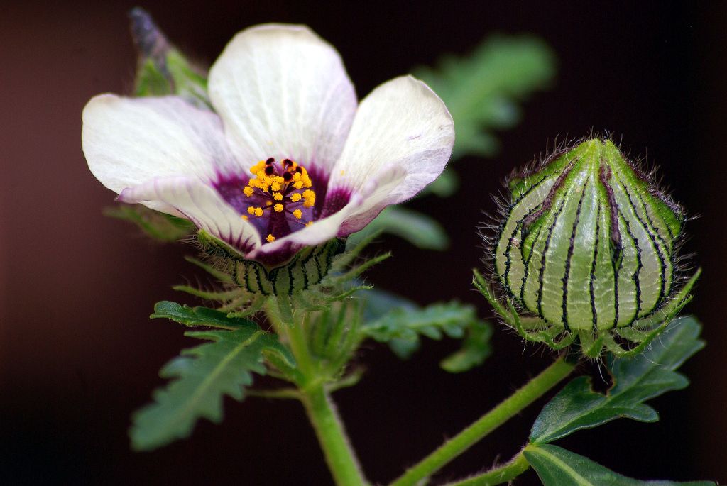 - Frunzele, dispuse altern și cu pețiolul lung, sunt împărțite până la bază în 3 - 5 segmente penat-fidate.
