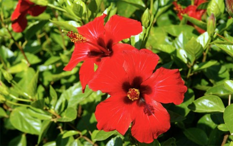 Florile apar din mai până în octombrie, însă în interioarele bine luminate înflorirea poate surveni şi mai devreme, cu condiţia ca planta să fi trecut printr-o perioadă de răcoare. Sunt simple sau duble, cu 5 petale şi staminele unite, formân un tub. Înflorirea este masivă la plantele sănătoase, chiar dacă florile nu durează decât aprox. 36 de ore.