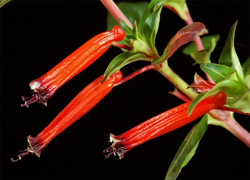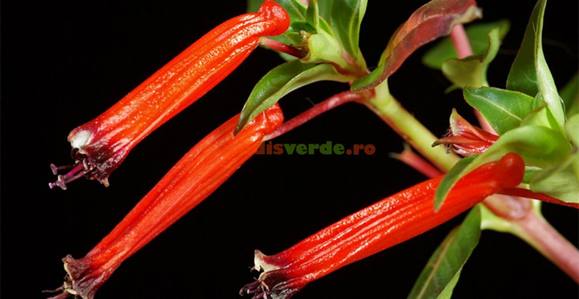 Înflorirea începe din iunie și durează până în noiembrie. Florile sunt calicii tubulare roșu-portocaliu intens, lipsite de petale.
