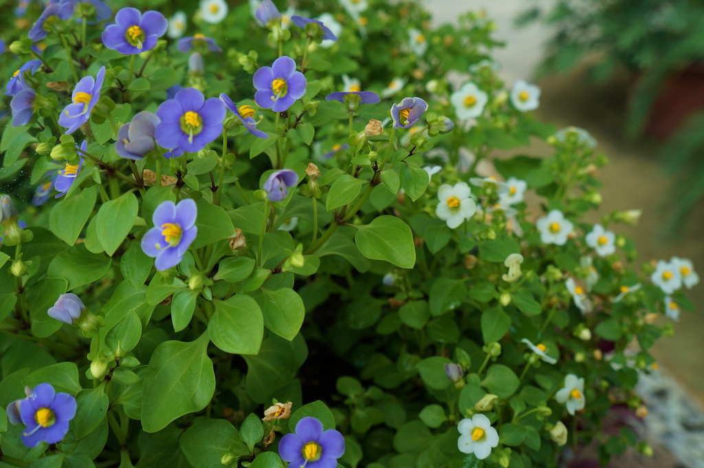 Mici cupe turtite, de culoare bleu-lila, uneori albe, cu stamine galben-auriu, parfumate la temperaturi de peste 20 °C. Înflorirea are loc în iulie-septembrie.