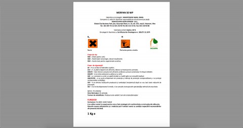 - MERPAN 50 WP favorizează și cicatrizarea rănilor, fiind indicat pentru un tratament la pomi după tăieri, cât și după grindină, pentru a preveni instalarea infecțiilor.