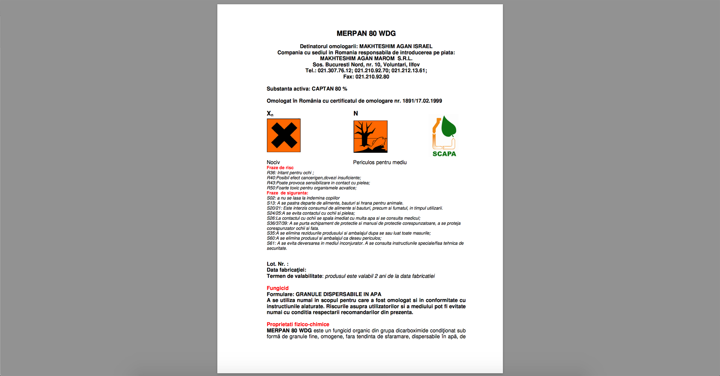 - În fișa tehnică a producătorului se spune și că: „prin aplicarea produsului la măr, înainte de recoltare, se previne în mod eficient apariția bolilor de depozit”.