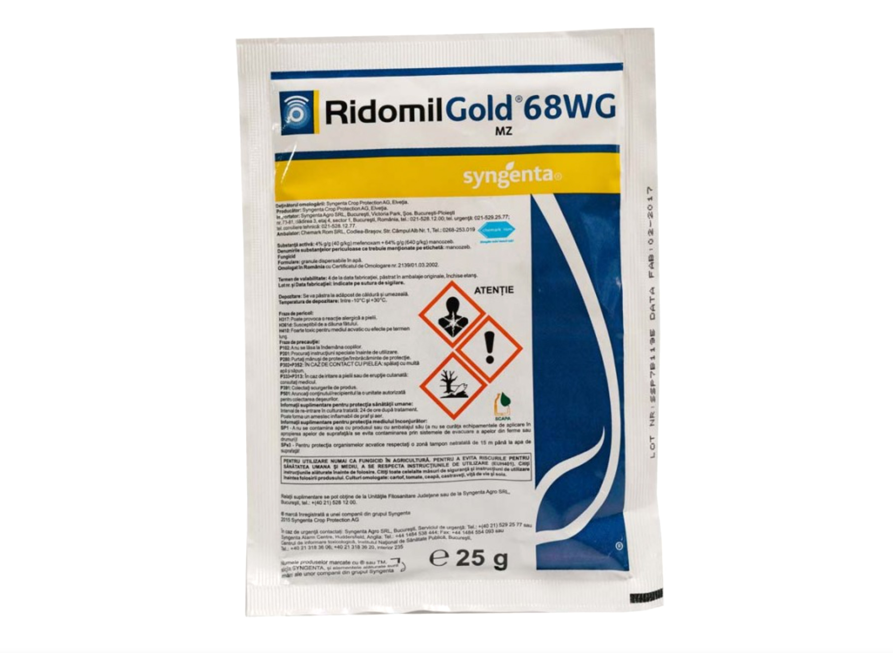 - Ridomil Gold MZ este un fungicid pentru combaterea manei, cu acţiune dublă: sistemică ascendentă (acropetal) şi de contact.