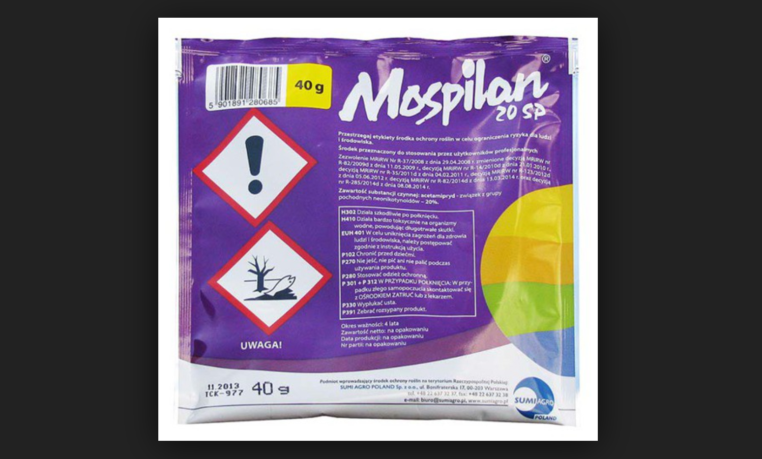 - Produs similiar cu Mospilan 20 SG, diferită fiind forma de prezentare (Mospilan 20 SG - granule solubile în apă, iar Molspinal 20 SP - pulbere solubilă în apă.)