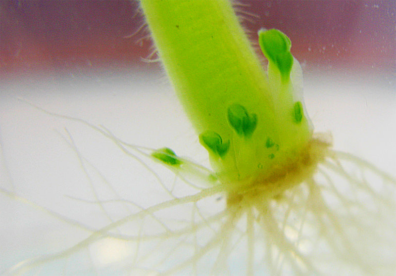 Puneţi baza butaşului într-un vas cu apă în care a fost adăgată o bucată mică de cărbune de lemn, ce filtrează şi curăţă apa.