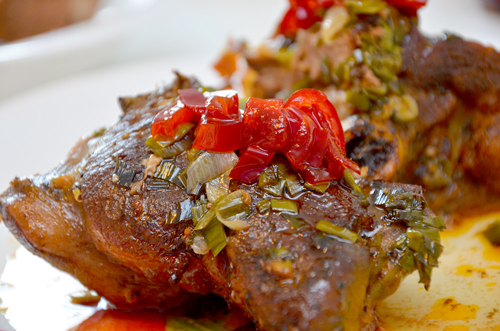 Friptură de miel cu dulceaţă de ardei iuţi.